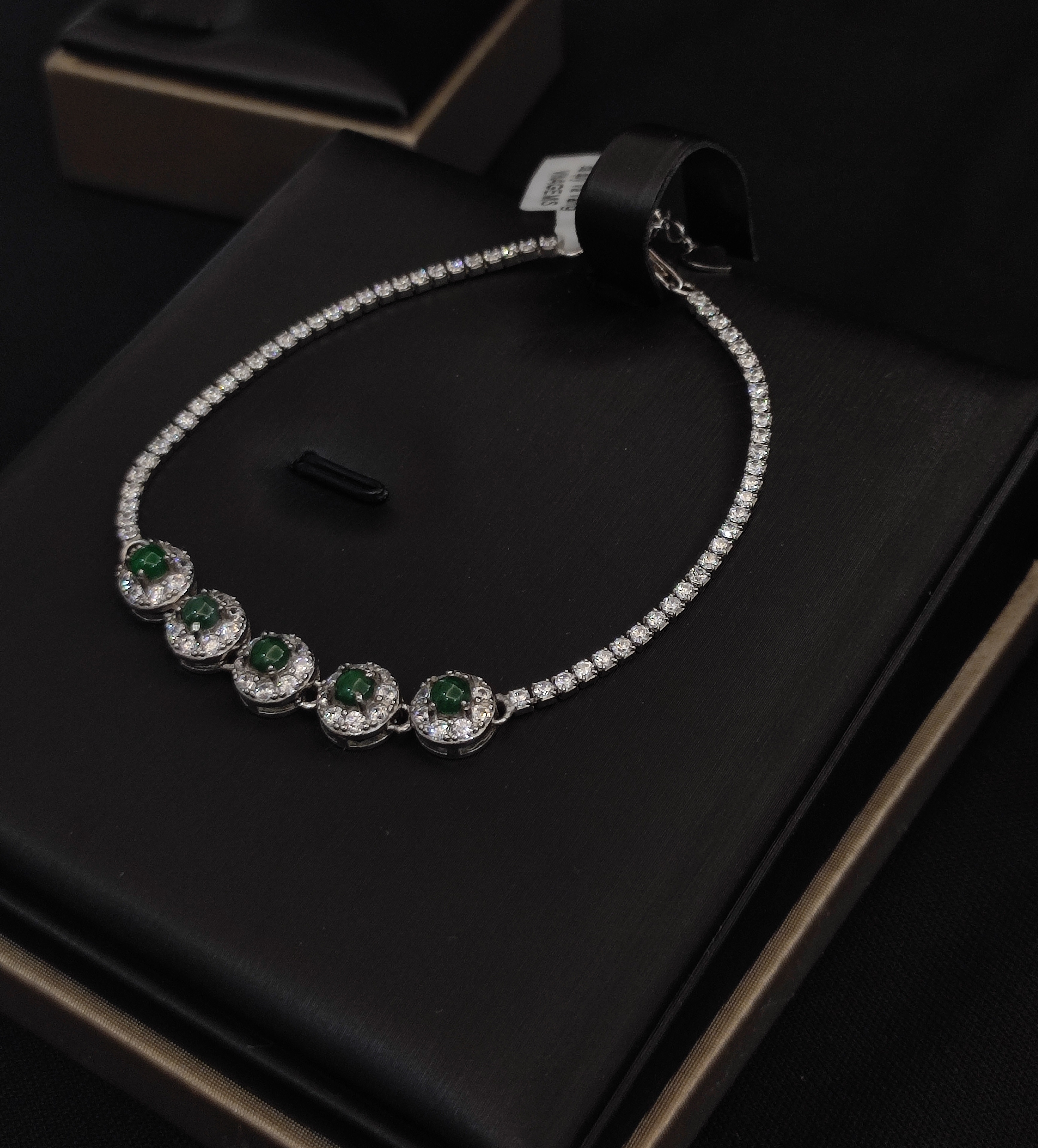 Khung đính đá lấp lánh tôn lên vẻ thanh lịch, làm nổi bật sắc ngọc tự nhiên.