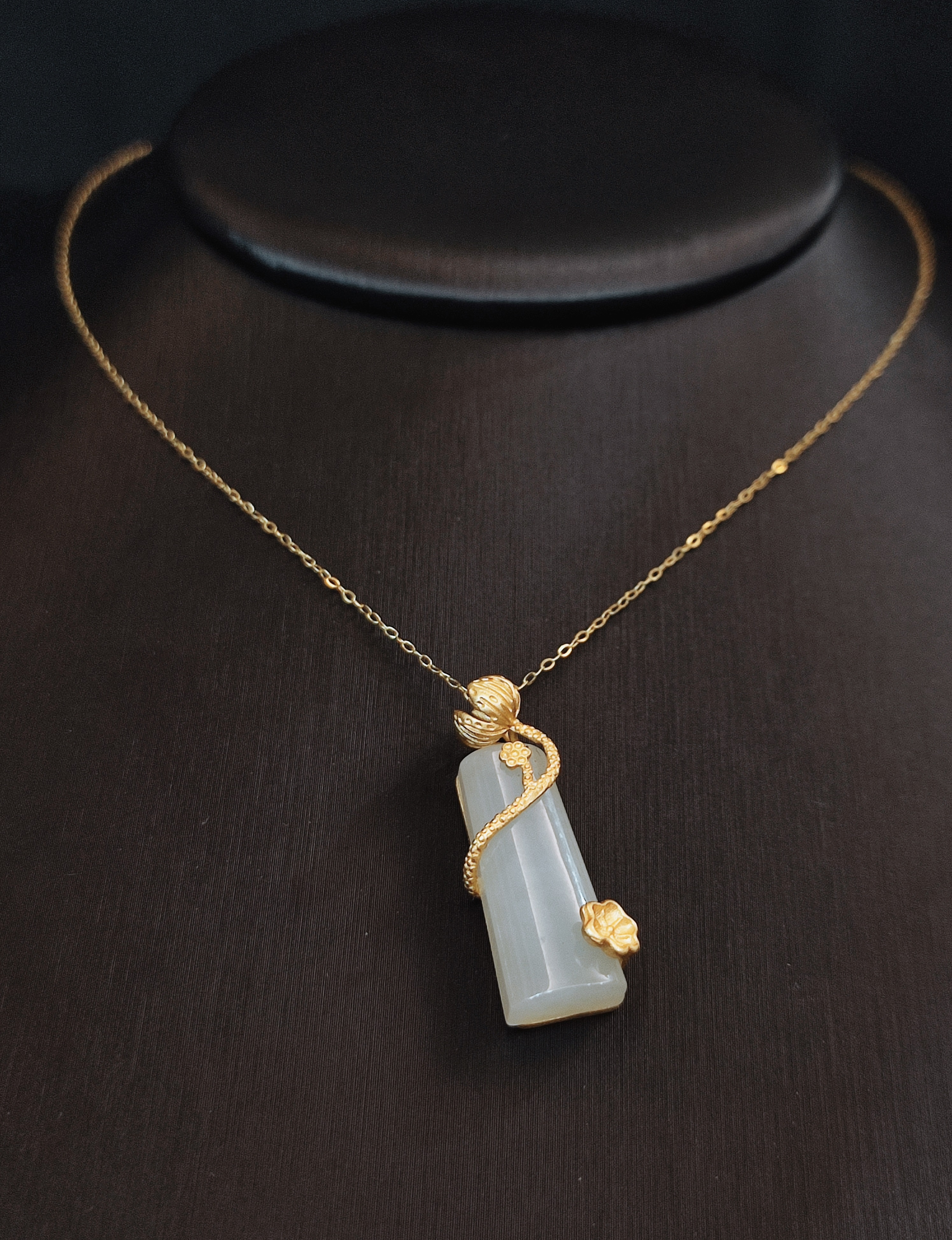Dây chuyền chế tác từ chất liệu quý, sáng bóng, mang lại vẻ đẹp sang trọng và bền bỉ theo thời gian.