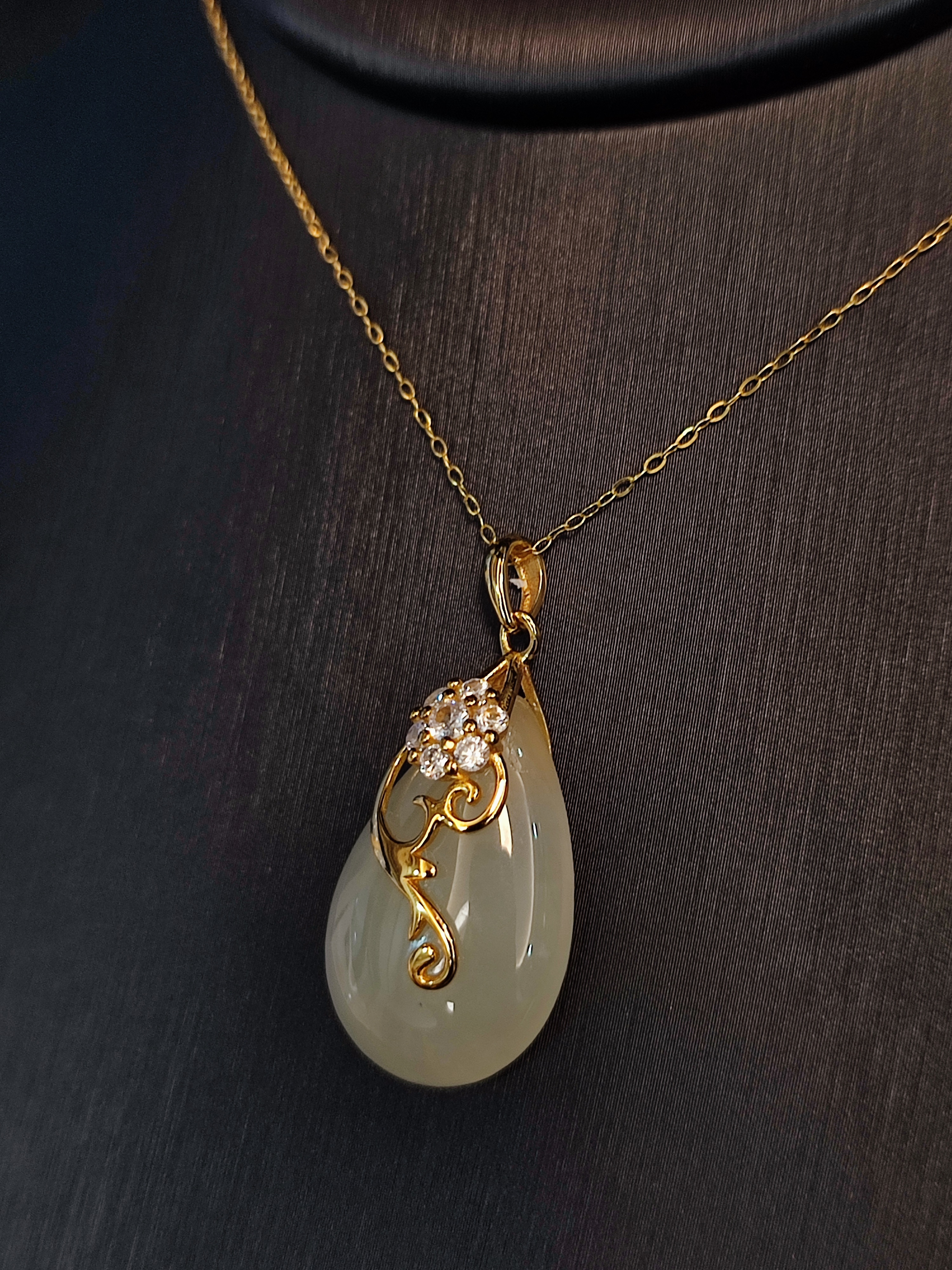 Vòng Đeo Cổ Vàng 18K, Ngọc Myanmar Bạch Sắc